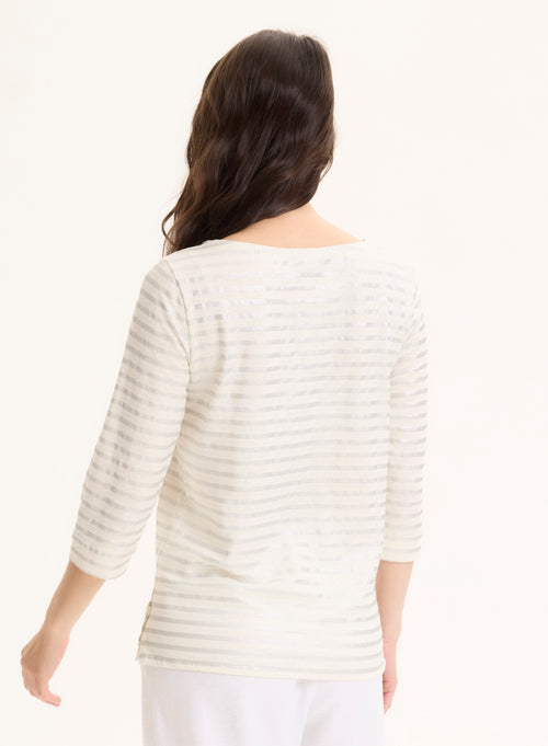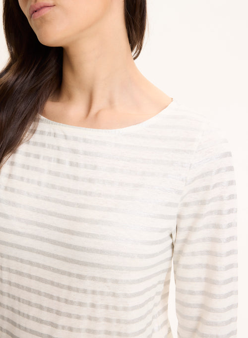 Silver three-quarter-sleeve boat-neck T-shirt in Linen / Elastane