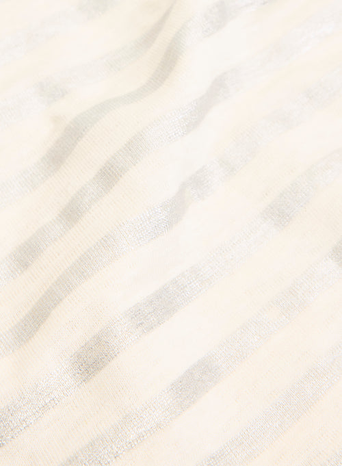 Silver Boat Neck Three-Quarter Sleeve Linen Elastane T-shirt This silver T-shirt with a boat neck and three-quarter sleeves is made from linen and elastane for light, fluid comfort. Linen, a natural fiber, offers a fresh feeling and ideal breathability, while elastane adds a touch of elasticity for a fitted and pleasant cut. This elegant and modern design is perfect for a casual outfit or a more dressed-up look. A versatile choice combining comfort, style, and lightness, ideal for any occasion.
