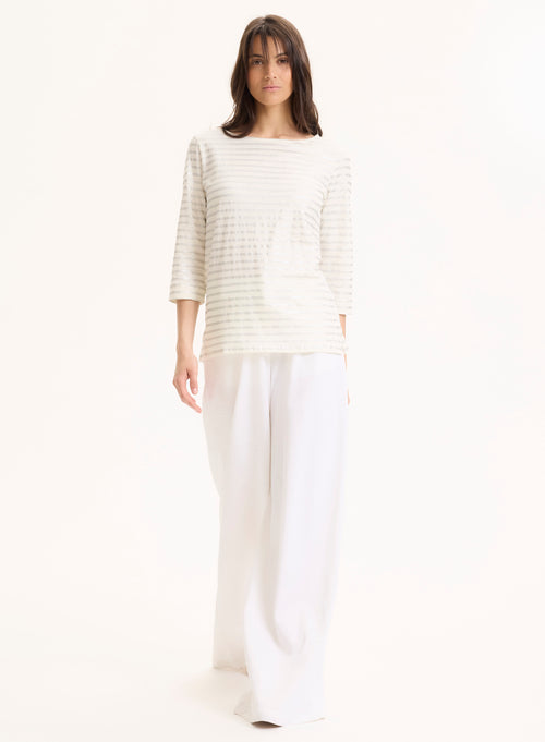 Silver three-quarter-sleeve boat-neck T-shirt in Linen / Elastane - MAJESTIC FILATURES