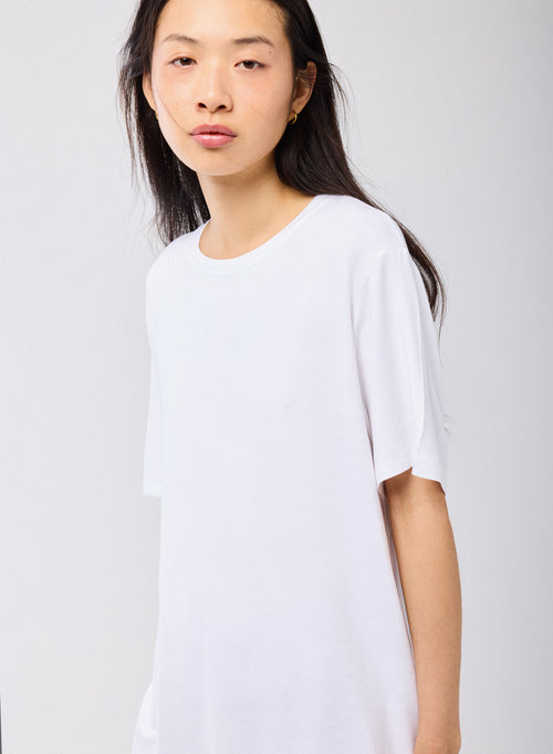 Camiseta Manga Corta Cuello en Crew Oversize en Algodón Deluxe Blanco - MAJESTIC FILATURES