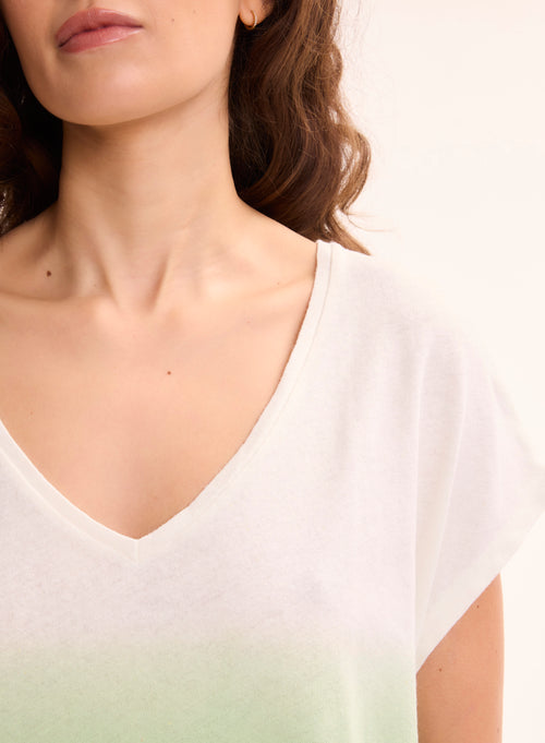 T-shirt Vert clair Col V Manches Courtes en Coton organique / Lin
